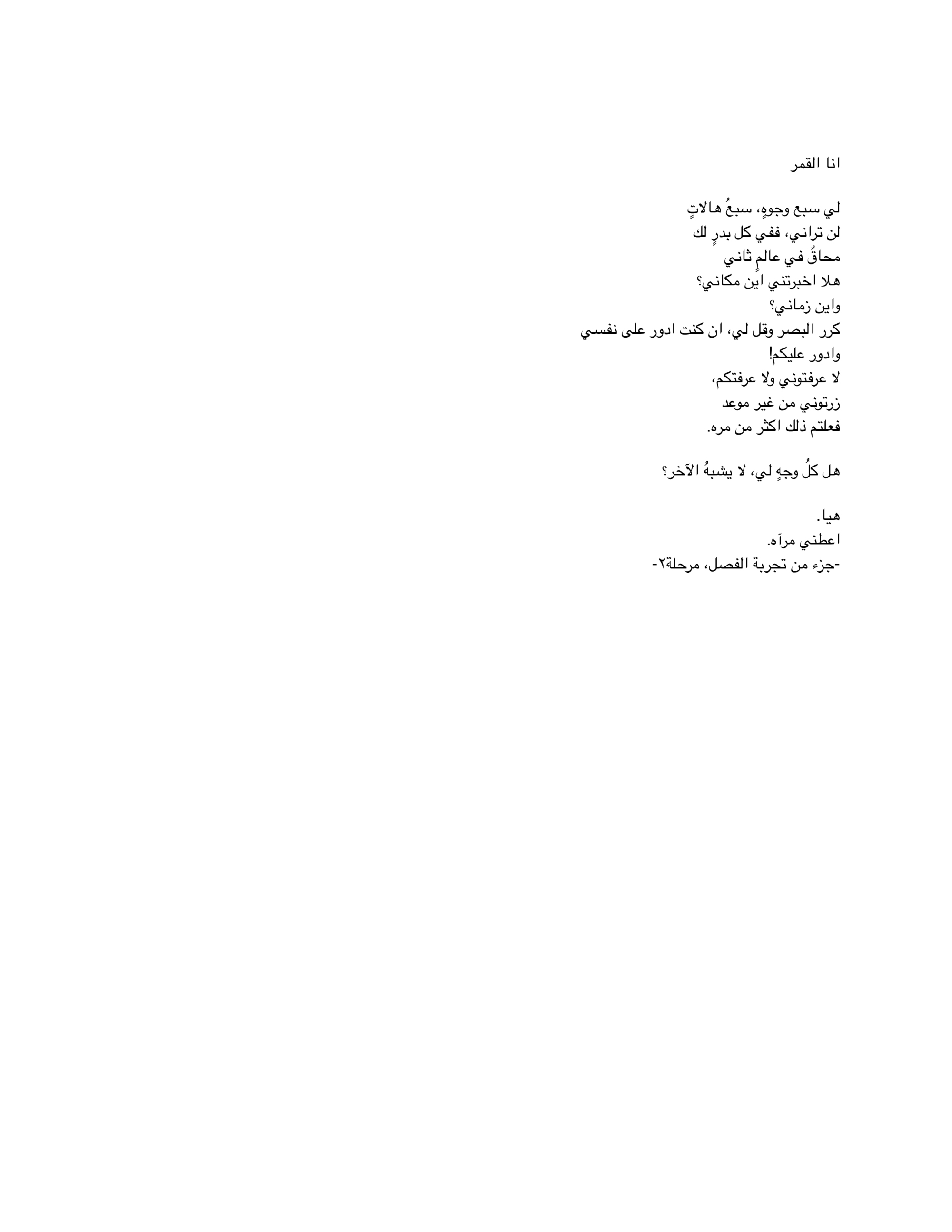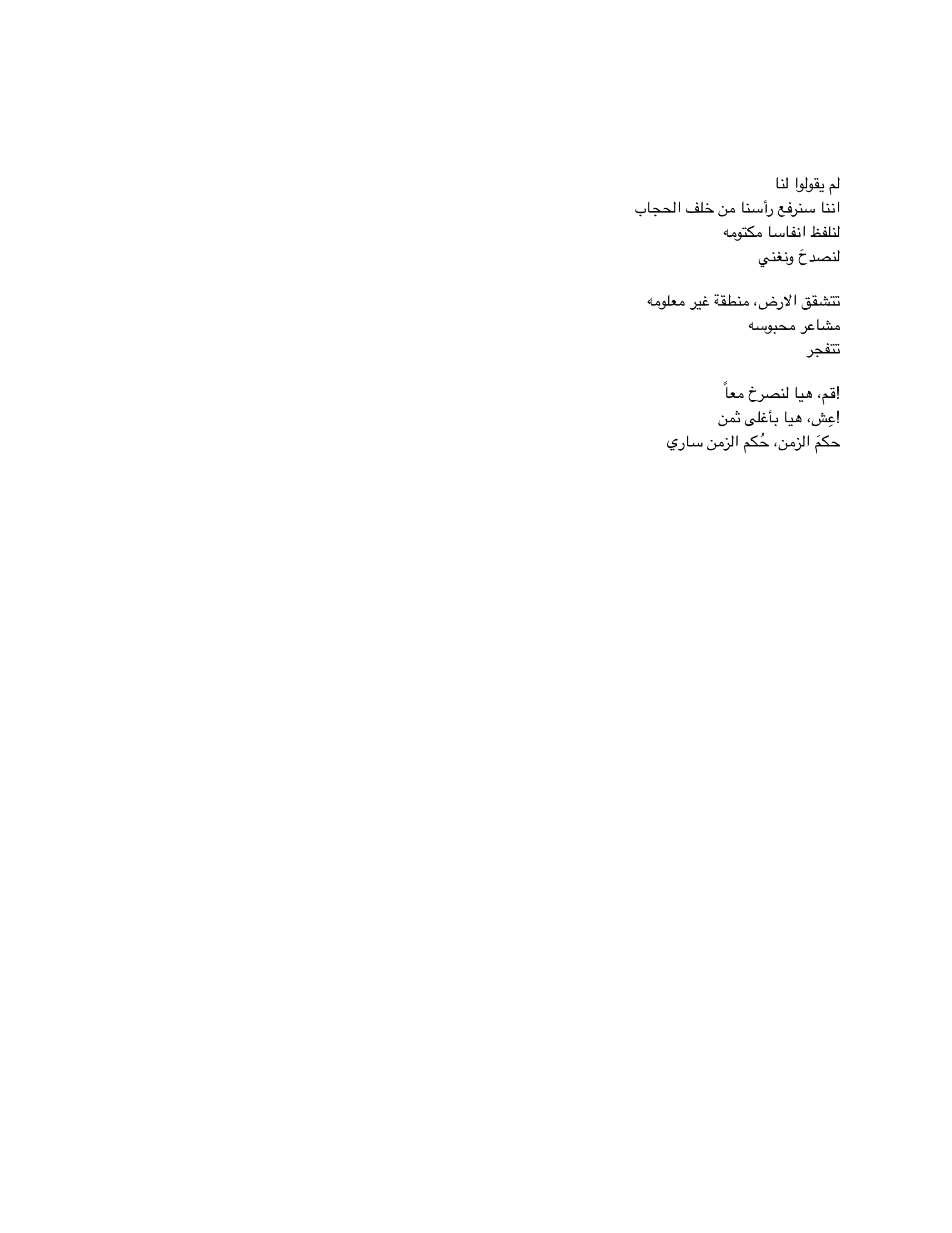 Call & Response Textual responses to the absurdity of life with no restriction of language, context and rhythm. ردود فعل نصية على غرابة الحياة المقاربة للسخافه في غالب الأحيان، بدون التقيد بلغة أو سياق أو حتى ايقاع